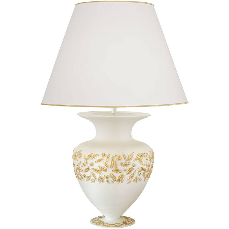 Kolarz ANFORA Lampada Da Tavolo In Tessuto Con Paralume Rotondo Conico Bianco | Finitura: bianco | Grado di protezione IP: IP20 | Altezza: 65 cm | Diametro: 45 cm | Tipo di lampada: E27 | N. di lampade: 1 | Lampadina inclusa: no | Peso: 2,5 kg | Potenza (max): 100 W