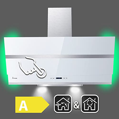 KKT KOLBE/Cappa Murale con altezza libera/Cappa aspirante / 90cm / acciaio inossidabile/vetro bianco/WiFi/auto spegnimento/Illuminazione LED RGBW/Operazione di tocco / HERMES907WM