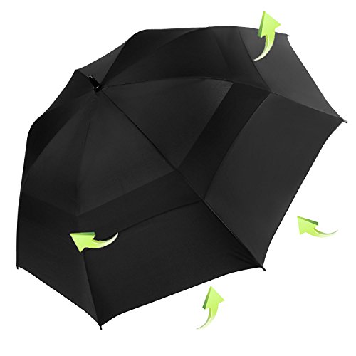 KOLER Ombrello automatico da golf, 62 pollici grandi ombrelli a doppia ventilazione baldacchino, antivento e resistente alla pioggia e al sole bastone da golf ombrello per uomini e donne, nero