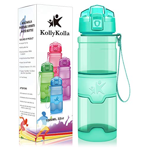 KollyKolla Sport Trinkflasche BPA-frei Auslaufsicher Wasserflasche, 380ml Tritan Sportflasche Kunststoff mit Filter für Kinder, Schule, Mädchen, Wasser, Fahrrad, Gym, Yoga, Camping, Glossy Smaragd