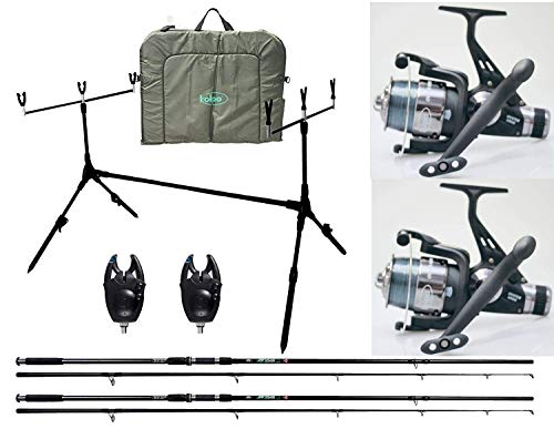 Kolpo Kit Combo Carpfishing 2 Canne 2 Mulinelli Camo 2 Segnalatori 1 Pod Pesca Carpa 1 materassino slamatura
