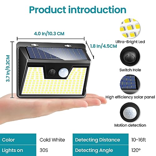 【Upgrade Kolpop Luce solare led esterno】Le Faretti Solari a Led da Esterno di 140 LED super luminose ogni confezione, l'induttore di movimento PIR potenziato offre una potente sensibilità al movimento fino a 12-20 piedi con un angolo di rilevamento di 120°, e l'angolo di illuminazione a 270° quadrupla illuminano per fino a 30m² La gamma di illuminazione crea un ambiente luminoso e sicuro.