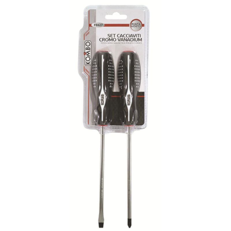 KOMBO - Set 2 Cacciaviti in Cromo Vanadium Croce e Spaccato manico antiscivolo. punta magnetica, 6x150mm KIT Cacciaviti Utensili a Mano