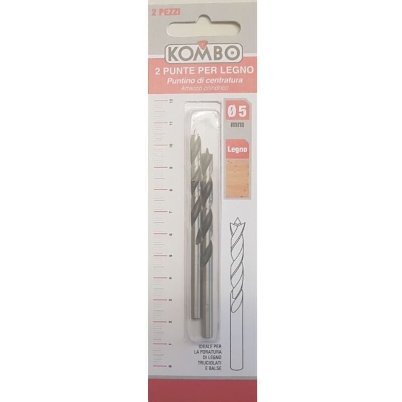 Punta trapano 5 x 86 per legno in acciaio di qualita' attacco cilindrico (2 pz)