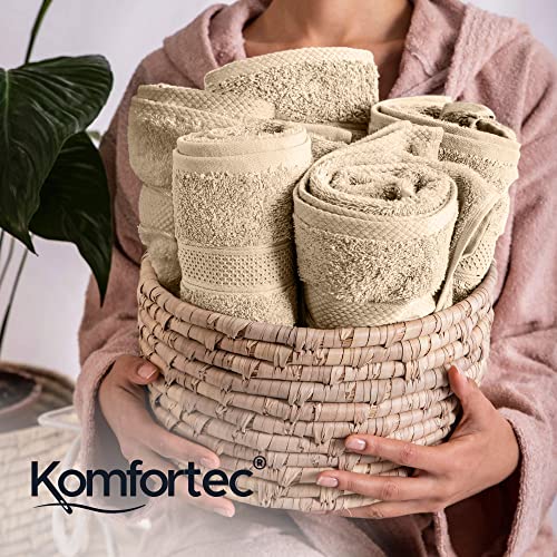 Komfortec Set di 2 asciugamani da doccia, 70 x 140 cm, confezione doppia,%100 cotone, asciugamani, spugna, morbidi, assorbenti, beige