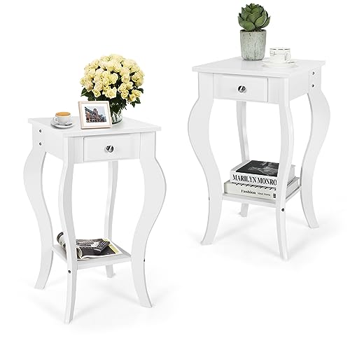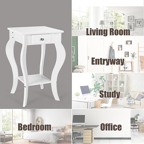KOMFOTTEU Comodino Camera da Letto con Cassetto, Comodino Piccolo in Legno MDF, Tavolino Lato in Stile Shabby Chic per Soggiorno, con Aspetto Unico