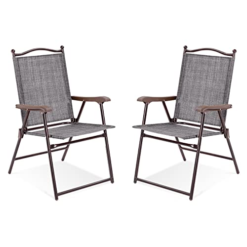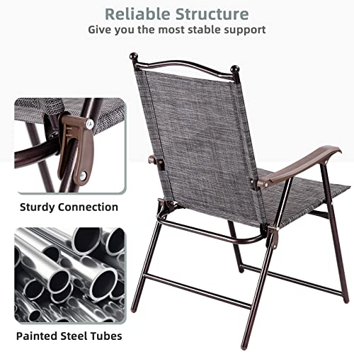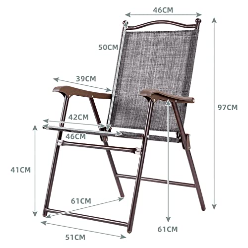 KOMFOTTEU Set di 2 sedie pieghevoli con braccioli e maniglia, resistenti alle intemperie, da campeggio, da balcone, pieghevoli, fino a 140 kg, per giardino, balcone, viaggio (nero-grigio)