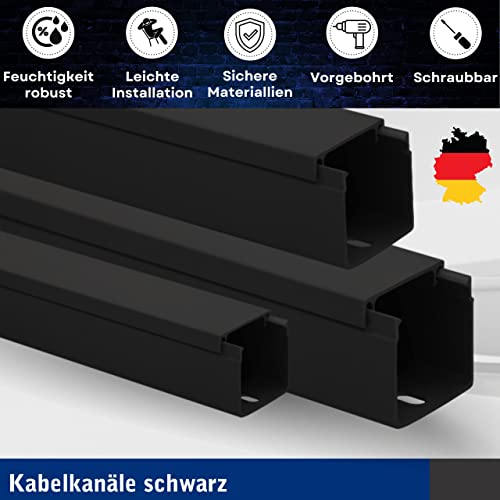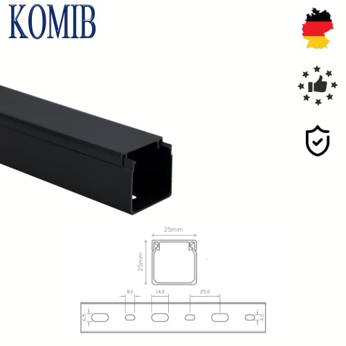KOMIB - Canalina per cavi da 10 m, colore nero, avvitabile (con foro di montaggio sul pavimento), 2 m (25 x 25 mm)