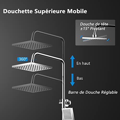 ALTEZZA REGOLABILE - Il set doccia è altamente retrattile e può essere regolato in altezza da 850 a 1210 mm. Il soffione può ruotare a 360 e inclinarsi di più o meno 15. Anche l'altezza e l'angolo di inclinazione del supporto doccia possono essere regolati.