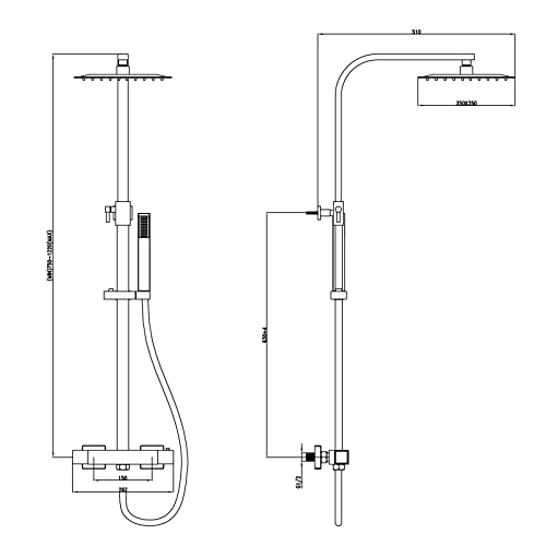 ALTEZZA E ANGOLO REGOLABILE - Il set doccia è altamente retrattile e può essere regolato in altezza da 750 a 1220 mm. Il soffione può ruotare di 360 e inclinarsi di ±15. Anche l'altezza e l'angolo di inclinazione del supporto doccia possono essere regolati.