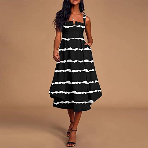 Komiseup Abito estivo da donna, abito estivo da donna, elegante, per il tempo libero, alla moda, con stampa a righe, slim fit, senza maniche, con scollo a V e tasche, A03 nero., s