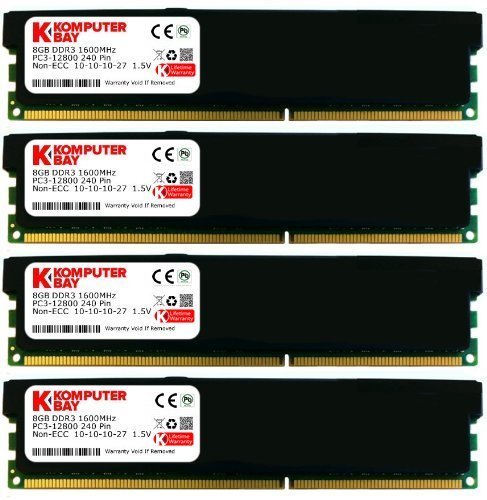 Komputerbay 32GB (4 x 8 GB) DDR3 PC3-12800 1600MHz DIMM con Nero Heatspreaders basso Profilo 240-Pin Dual / Quad Channel RAM Desktop Memoria KIT 10-10-10-27 XMP pronto