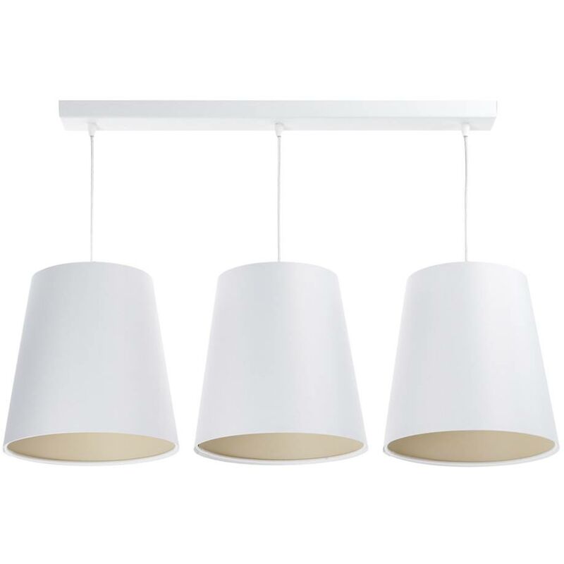 Hanging lamp Boho 3xe27 60w fabric on PVC plastic White H: 115cm L: 85cm Ø25cm dimmable Dimensions in mm: Length: 850, height: total height: 115, umbrella height: 170, diametro: ombrello sotto: 250, superiore: 180 peso in kg: 2.2 Tipo di agente luminato/versione: 3xe27 Lampade contengono: No (compatibile con lampade a LED e salva per energia) Prestazioni massime in Watt: 60w Classe di protezione: ip20 Dimmabile: Sì materiale per la casa: metal Colore abitativo: bianco Materiale di vetro/supporto: sostanza sostanziale sulla plastica PVC Colore vetro/ombrello: bianco Informazioni aggiuntive: Network Crema per cavi 80 cm