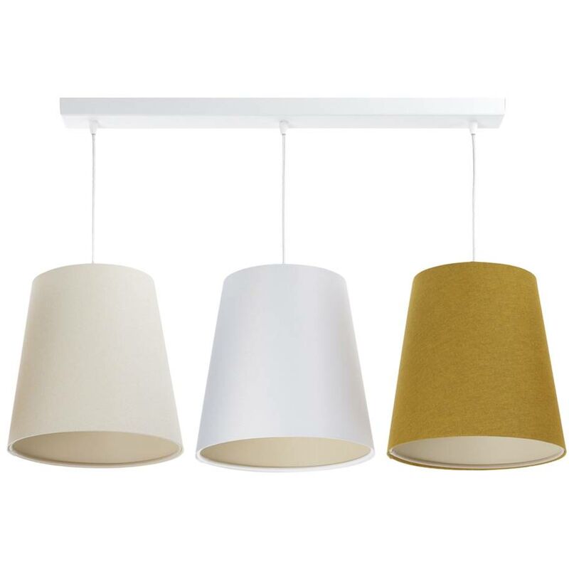Lampada sospesa Boho 3xe27 40W tessuto su mostardo in plastica in PVC, bianco H: 115 cm L: 85 cm Ø25 cm Dimmedibile Dimensioni in mm: Lunghezza: 850, altezza: altezza totale: 115, ombrella Altezza: 170, diametro: ombrello sotto: 250, sopra: 180 peso in kg: 2.2 Tipo di agente luminato/socket: 3xe27 Lampade contengono: NO (compatibile con lampade a LED e al risparmio energetico) Prestazioni massime in watt: 60w protezione Tipo: IP20 Dimmbar: Sì Materiale per la casa: metal Colore abitativo: Bianco Materiale vetro/picchi: tessuto sostantico sulla plastica in PVC Colore vetro/ombrello: senape, bianco Informazioni aggiuntive: Cream di cavi di rete 80 cm