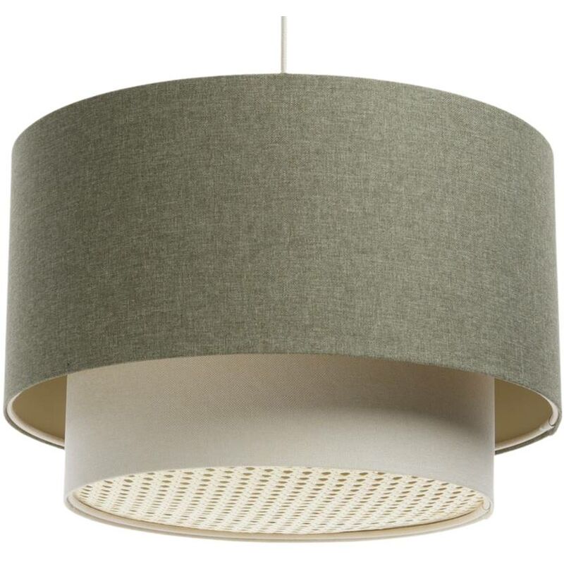 Lampada sospesa boho elegante E27 1x40w tessuto strutturato su plastica in PVC, con diffusore di rattan grigio, bianco H: 106 cm Ø60 cm Dimmessibile Dimensioni in mm: Altezza: 1060;