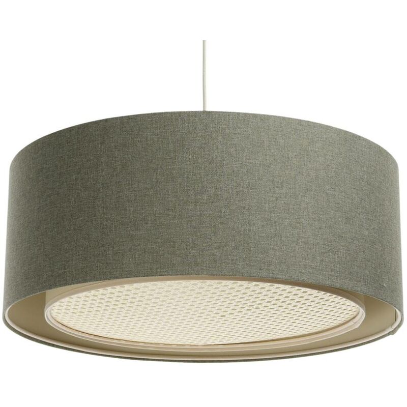 Lampada sospesa boho elegante E27 1x40w tessuto strutturato su plastica in PVC, con grigio diffusore rattan, crema H: 90 cm Ø50 cm Dimmessibile Dimensioni in mm: Altezza: 900;