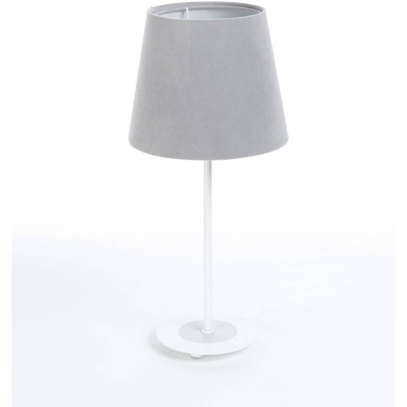 Lampada da tavolo JASMIN BEBE E27 max.1X60W tessuto velour jasmine grigio su plastica PP, interno grigio chiaro H: 40 cm Ø18cm con interruttore a scorrimento Dimensioni in mm: Altezza: Altezza totale: 400, altezza paralume: 150, diametro paralume: superiore 130, inferiore 180 Peso in kg: 0,53 Tipo di lampadina/attacco: E27 Lampadine incluse: NO (compatibile con lampade a LED e a risparmio energetico) Potenza massima in watt: max. 1X60W Grado di protezione: IP20 Dimmerabile: NO Interruttore: SI Materiale alloggiamento: metallo Colore alloggiamento: bianco, beige Materiale vetro/paralume: tessuto in velluto Jasmine su plastica PP Colore vetro/paralume: grigio, grigio chiaro Informazioni aggiuntive: Cavo di alimentazione trasparente 185 cm, con interruttore a scorrimento