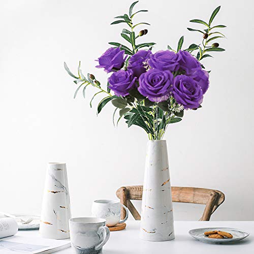 KONCHILE Artificiali Rosa Bouquet 10 Teste Seta Fiori Artificiali Bouquet per DIY Matrimoni Mazzi Nuziale Festa Casa Stanza Decorazioni Baby Shower (viola)