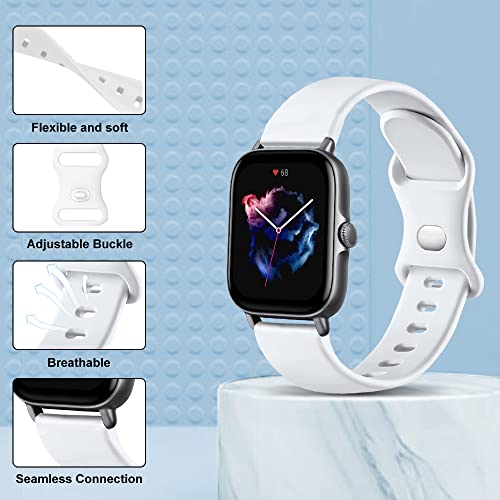 KONEE 20mm Cinturino Compatibile con Amazfit GTS 4/GTS 4 Mini/Bip 3 Pro/Bip 3/GTS 3/GTS 2/GTS 2e/GTS 2 Mini, Bracciale Cinturini di Ricambio in Silicone Morbido Compatibile con Amazfit GTR 42mm-Bianco