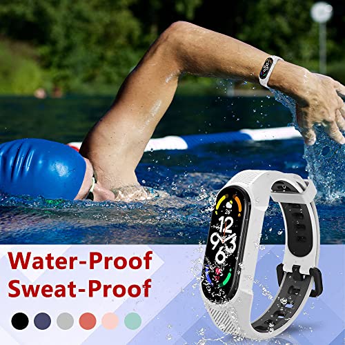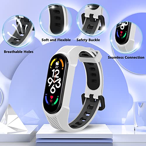 KONEE Cinturino Compatibile con Xiaomi Smart Band 7, Bracciale Cinturini di Ricambio in Silicone Morbido Compatibile con Xiaomi Mi Band 7/Mi Band 6/Mi Band 5 - Bianco&Nero