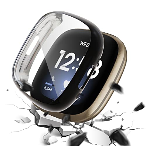 KONEE Cover Compatibile con Fitbit Versa 4, Custodia con Protezione di Schermo in TPU Flessibile, Custodia in Utrasottile ad Alta Definizione per Fitbit Versa 4 - Nero