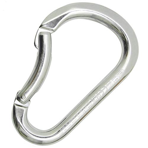 Moschettone in alluminio con leva curva ed ampia apertura della leva.