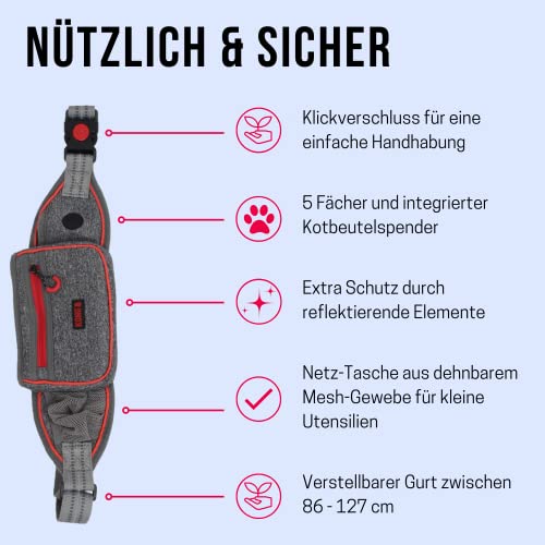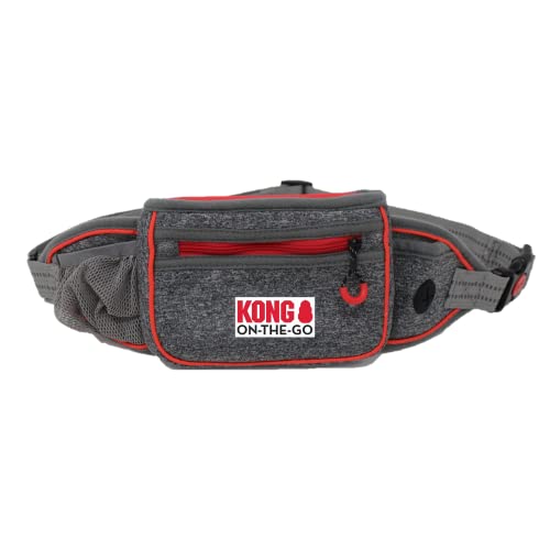 KONG Sacca per cani di colore grigio, marsupio per cani con cintura riflettente e dispenser di sacchetti, impermeabile e robusta borsa per cani