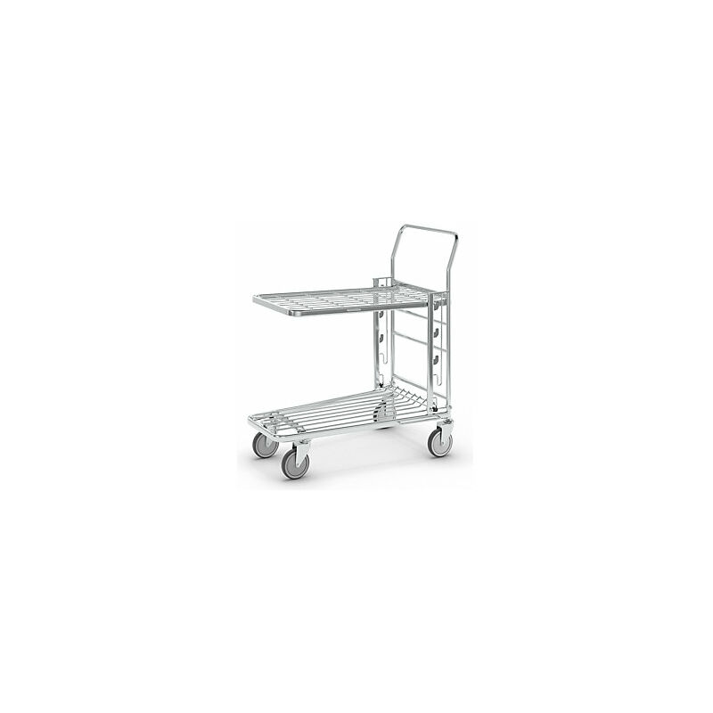 Carrello della spesa, zincato, lungh. x largh. x alt. 890 x 520 x 1000 mm, portata 300 kg. Fornitura = smontato. Lunghezza = 890 mm. Larghezza = 520 mm. Altezza = 1000 mm. Tipo di prodotto = carrelli della spesa. Portata = 300 kg. Materiale telaio = acciaio, con zincatura galvanica. Colore telaio = zincatura. Colore superficie di carico = zincatura. Dotazione ruote = 4 rotelle pivottanti. Diametro ruote = 125 mm. La zincatura offre una maggiore protezione anticorrosione. Inseribili l'uno nell'altro per un ingombro ridotto. Estremamente versatili. Ergonomici e maneggevoli. Robusto telaio in acciaio con zincatura elettrolitica, con verniciatura trasparente. Portata del ripiano superiore 100 kg. Dotazione ruote 4 rotelle pivottanti, Ø 125 mm, in gomma piena antitraccia. Altezza del ripiano superiore regolabile, 460, 580 e 710 mm. Viene consegnato smontato. Montaggio semplice.