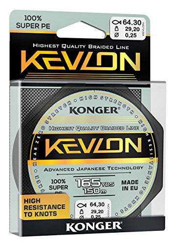 Konger Kevlon Black - Lenza da pesca intrecciata a 4 vie, 150 m, 0,06-0,20 mm