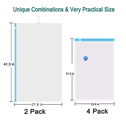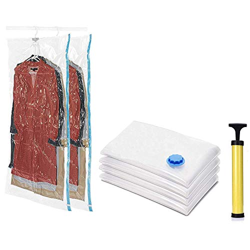 KongEU - Confezione da 6 sacchetti salvaspazio da appendere, con chiusura sottovuoto, per abiti, abiti o giacche