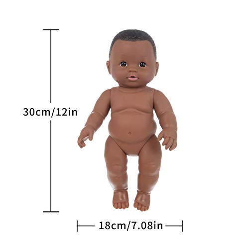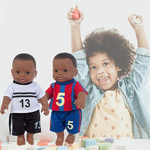 Kongxin Ragazzo Nero, Bambola Nera da 12 Pollici, Bambola da Ragazzo Africano, Occhi Marroni, Vestiti E Scarpe Rimovibili per Bambini dai 12 Mesi in su