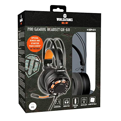 Konix Wot gh-60 - Casco Gamer PC compatibile PS4 - Audio 7.1 Surround HD con vibrazione - Cuffie Gaming PC USB - Cuscinetto confortevole - Cuffie Microfono Omnidirezionale - Retroilluminazione LED arancione