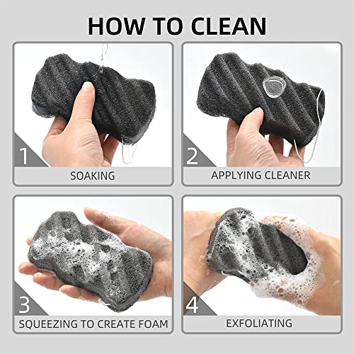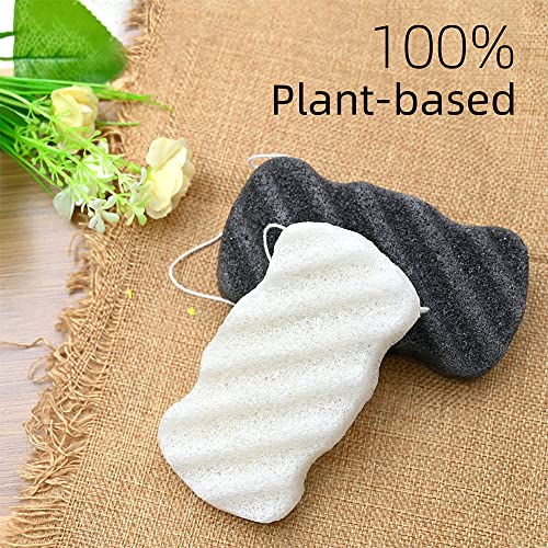 Konjac Spugna (2 confezioni), Dolovemk Spugne per il viso, infuse con carbone attivo di bambù, spugnette riutilizzabili per la pulizia del viso e esfoliante