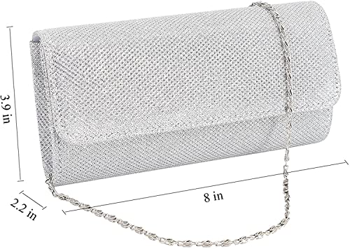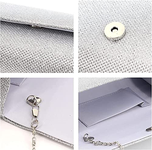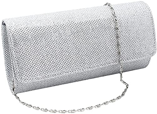 Konluesr Donne Pochette Borsa Da Sera Borsa Con Tracolla Catena Staccabile per Matrimonio Cocktail Party, Colore: argento.