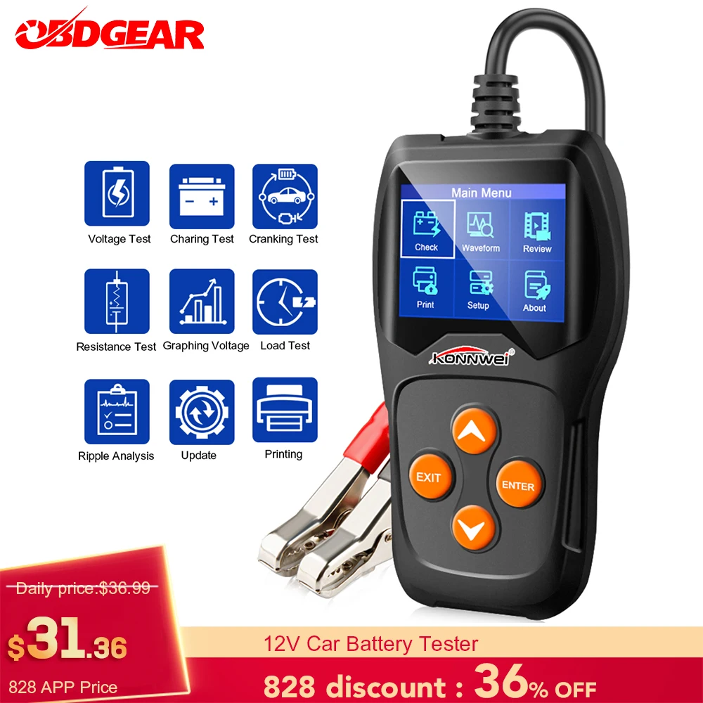 KONNWEI KW600 Car Battery Tester 12V Analyzer 100 to 2000CCA Test Battery Health/Faults 12V Digital Color Screen Auto Diagnostic