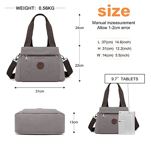 KONO Borsa a Tracolla Da Donna, Borsa Multifunzione, Stile Vintage, Borsa da Scuola Casual per Lavoro, Shopping, Viaggi (Grigio)