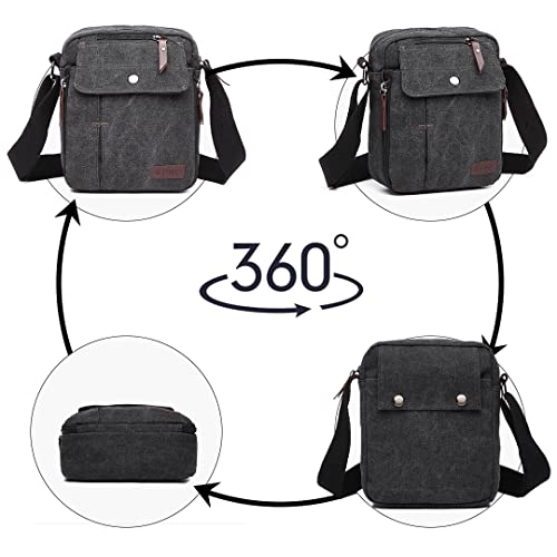 KONO Borsa a tracolla piccola Uomini Donne Borsa messenger Canvas Crossbody Borsa per viaggi Shopping Lavoro Palestra, Casual Piccolo Daypack (Nero)