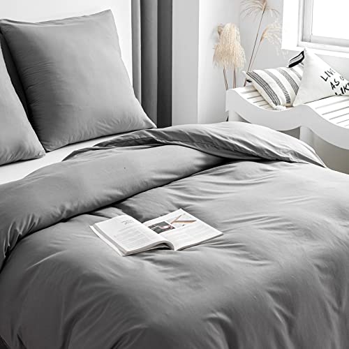 KONO Copripiumino in microfibra spazzolata con chiusura lampo + federa 80 x 80 cm, con chiusura a busta (grigio, 200 x 200 cm+80 x 80 cmx2 pezzi)