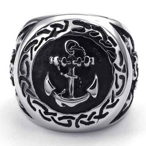 KONOV Gioielli Anello da Uomo, Anelli, Retro Anchor, Ancoraggio Sigillo, Acciaio Inossidabile, Argento - 22 (con Borsa Regalo)