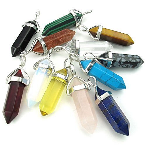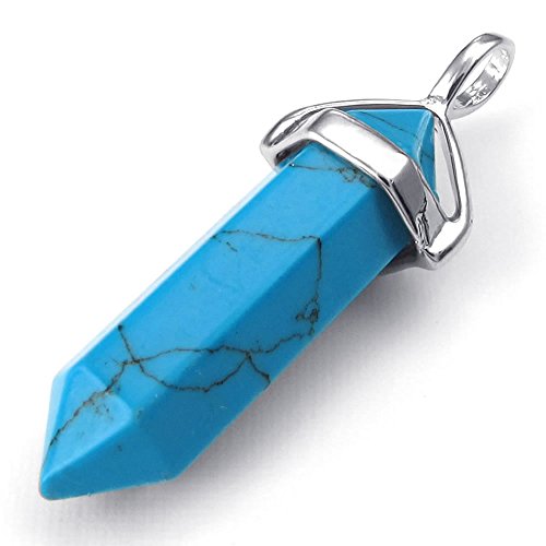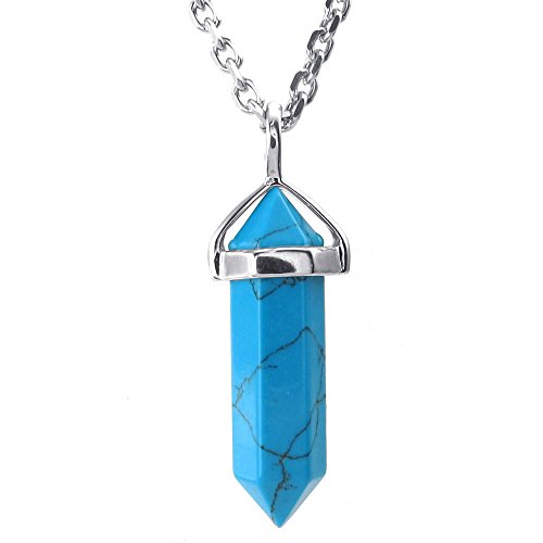 KONOV Gioielli Collana con Pendente da Uomo Donna, Ciondolo, Prisma Esagonale, Cristallo di Rocca Turchese Lega, Catenina Acciaio Inossidabile 60cm, Azzurro Argento(con Borsa Regalo)