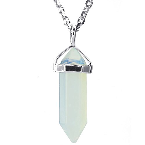 KONOV Gioielli Collana con Pendente da Uomo Donna, Ciondolo, Prisma Esagonale, Cristallo Lega, Catenina Acciaio Inossidabile 60cm, Bianco Azzurro Argento(con Borsa Regalo)