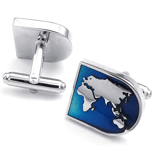 KONOV Gioielli Gemelli da Uomo, Gemelli da Polso Camicia, Fidanzamento, Mappa del mondo, Colore Azzurro Argento (con Borsa Regalo)