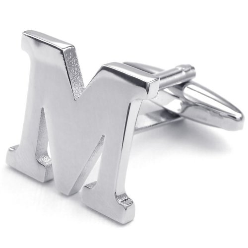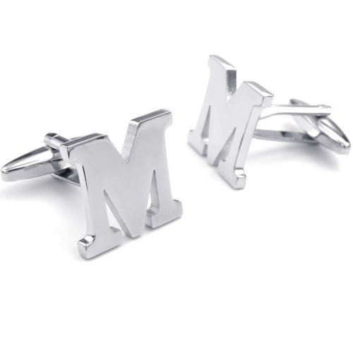 KONOV Gioielli Gemelli da Uomo, Gemelli da Polso Camicia, Fidanzamento, Nome Lettera M, Colore Argento (con Borsa Regalo)