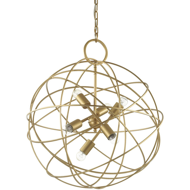 Montatura ed elementi decorativi interamente in metallo. Finitura con vernice oro scuro satinato. Ø 60 x H min 99 / max 174 cm max 6 x 60W E27 IP:20