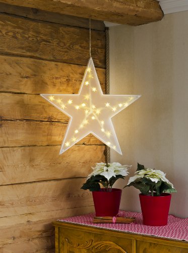 Konstsmide 2593-103 / Stella in materiale sintetico pendente a effetto stella grande / 30 diodi bianco caldi / 24V trasformatore da interno/cavo trasparente