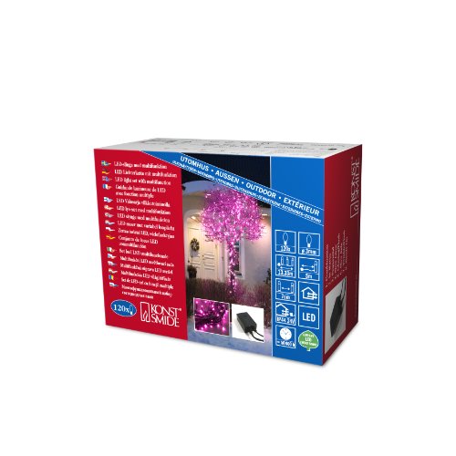 Konstsmide 3631-340 Catena luminosa a micro LED, 120 diodi rosa, multifunzione, trasformatore esterno 24 V, 7,2 W, cavo nero