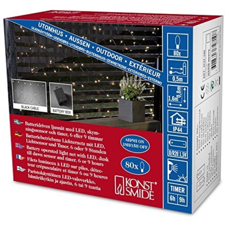 Descrizione Catena luminosa a LED, con interruttore on/off, sensore di luce e timer da 6 e 9 ore, per esterni (IP44), 120 diodi a luce bianca calda, funzionamento a batteria, cavo trasparente, 4 x D 1,5 V (escluse Dati tecnici: campo di applicazione: esterno e interno, classe di protezione IP44, connettore di alimentazione: a batteria, batterie: 4 x D 1,5 V (esclusivo), numero di luci: 120 diodi. Tecnologia: LED. Colore della luce: bianco caldo. Colore cavo: bianco. Materiale: plastica. Distanza tra le lampadine: 10 cm. Lunghezza luminosa: 12 m. Lunghezza cavo: 50 cm. Lunghezza totale: 12,5 m. Questa catena luminosa a LED alimentata a batteria per il Esterno di qualità. In Konstsmide non è solo un punto culminante per ogni decorazione festiva, ma anche un piccolo miracolo tecnico. Dotato di interruttore, sensore di luce, timer da 6 ore e 9 ore, offre tutto il comfort che si desidera per una decorazione esterna di alta qualità. Il vano batteria è facile da aprire e chiudere, non è