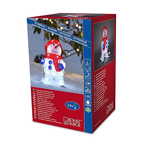 Konstsmide 6173-203 / Pupazzo LED in acrile con Sci / 24 diodi Bianco Freddo / 24V trasformatore da Esterno/Cavo Trasparente