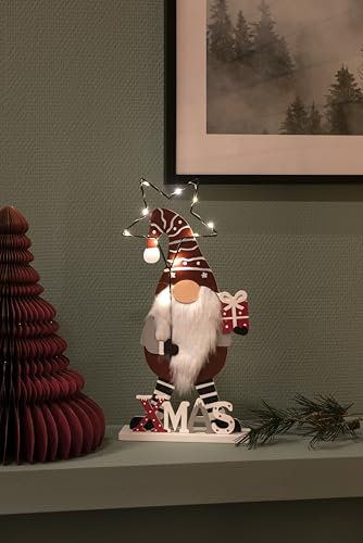 Konstsmide LED Babbo Natale con Stella, Timer 6H, 10 diodi a Luce Bianca Calda, Funzionamento a Batteria, per Interni, 2 x AA 1,5 V (Non Incluse), Colore: Rosso