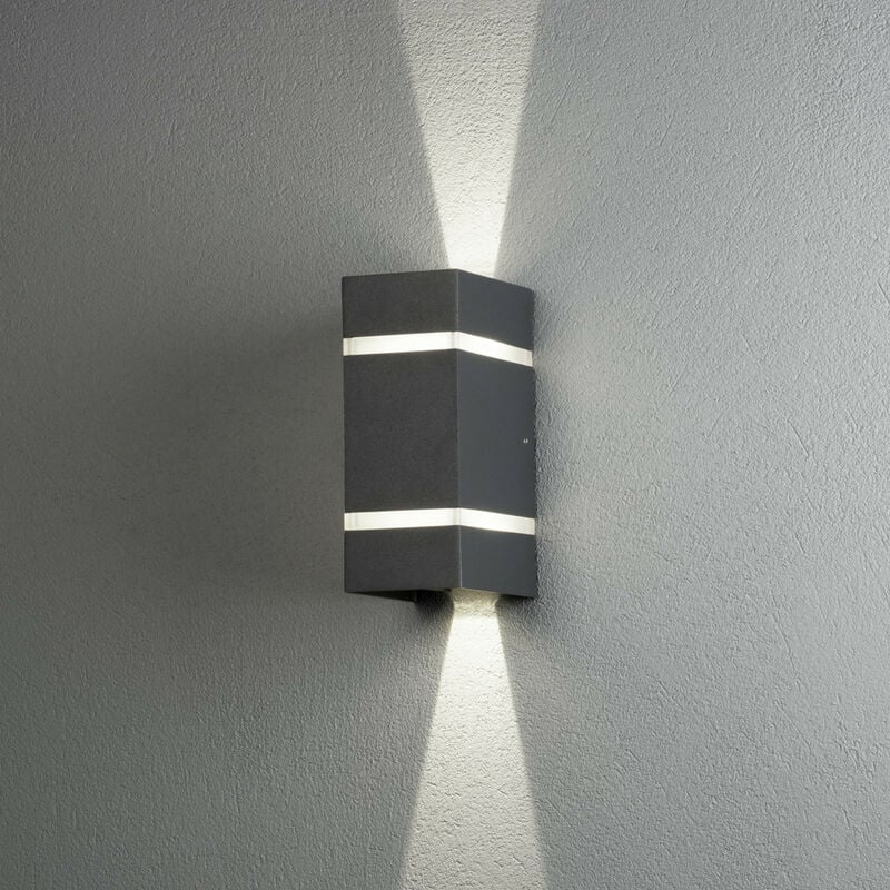 Konstsmide Cremona Applique da esterno moderna Up Down Antracite 2 X3 W LED ad alta potenza, IP54 | Finitura: Grigio Antracite | Materiale: alluminio | Grado di protezione IP: IP54 | Altezza: 19,5 cm | Larghezza: 8,5 cm | Profondità: 11,5 cm | Tipo di lampada: LED integrato | Lampadina inclusa: Sì | Kelvin: 3000K | Lumen: 600 lm